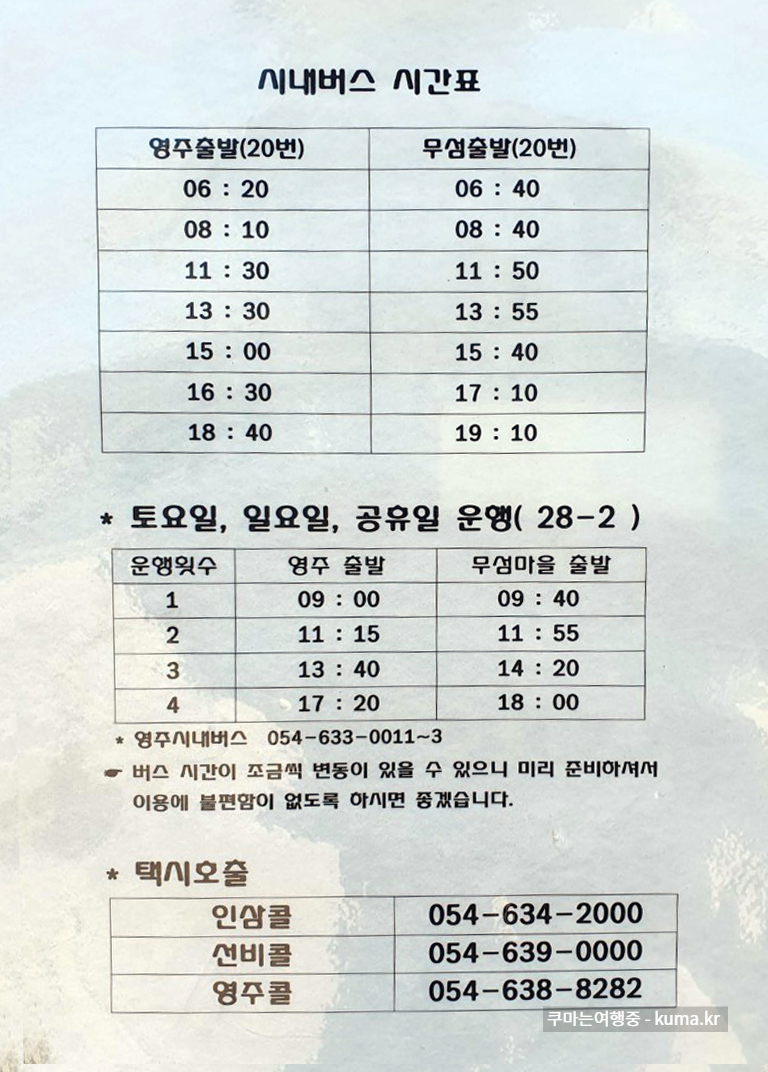 영주역 에서 직통으로 무섬마을로 데려다줄 28-2번 버스가